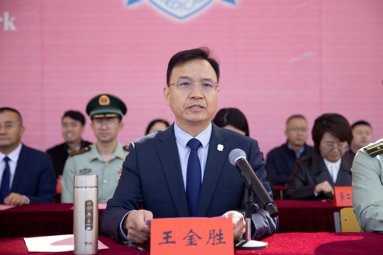 王金胜在总结讲话中向全体教官、带训教师和工作人员表示感谢,并向同学们提出三点希望:一要坚定理想信念,筑牢青春信仰之基;二要练就过硬本领,夯实专业成才之基;三要担当时代使命,勇挑民族复兴之梁。他强调,同学们生逢其时、重任在肩,要将军训收获转化为前进动力,努力成长为有理想、敢担当、能吃苦、肯奋斗的新时代医学人才。