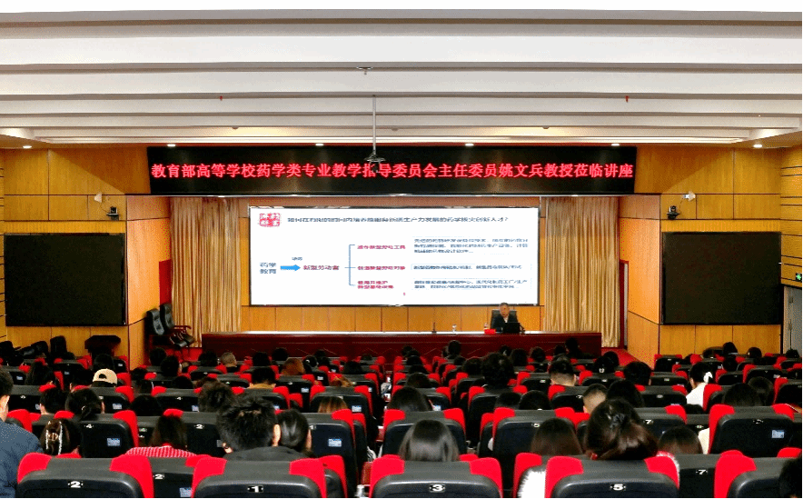 最后,姚文兵教授以“药学教育和人才培养的新进展和新思考”为题,为全校师生作了专题学术报告,深入剖析了药学专业建设与发展的前沿动态,并分享了宝贵的教育教学研究与实践经验。报告由宋晓亮教授主持。