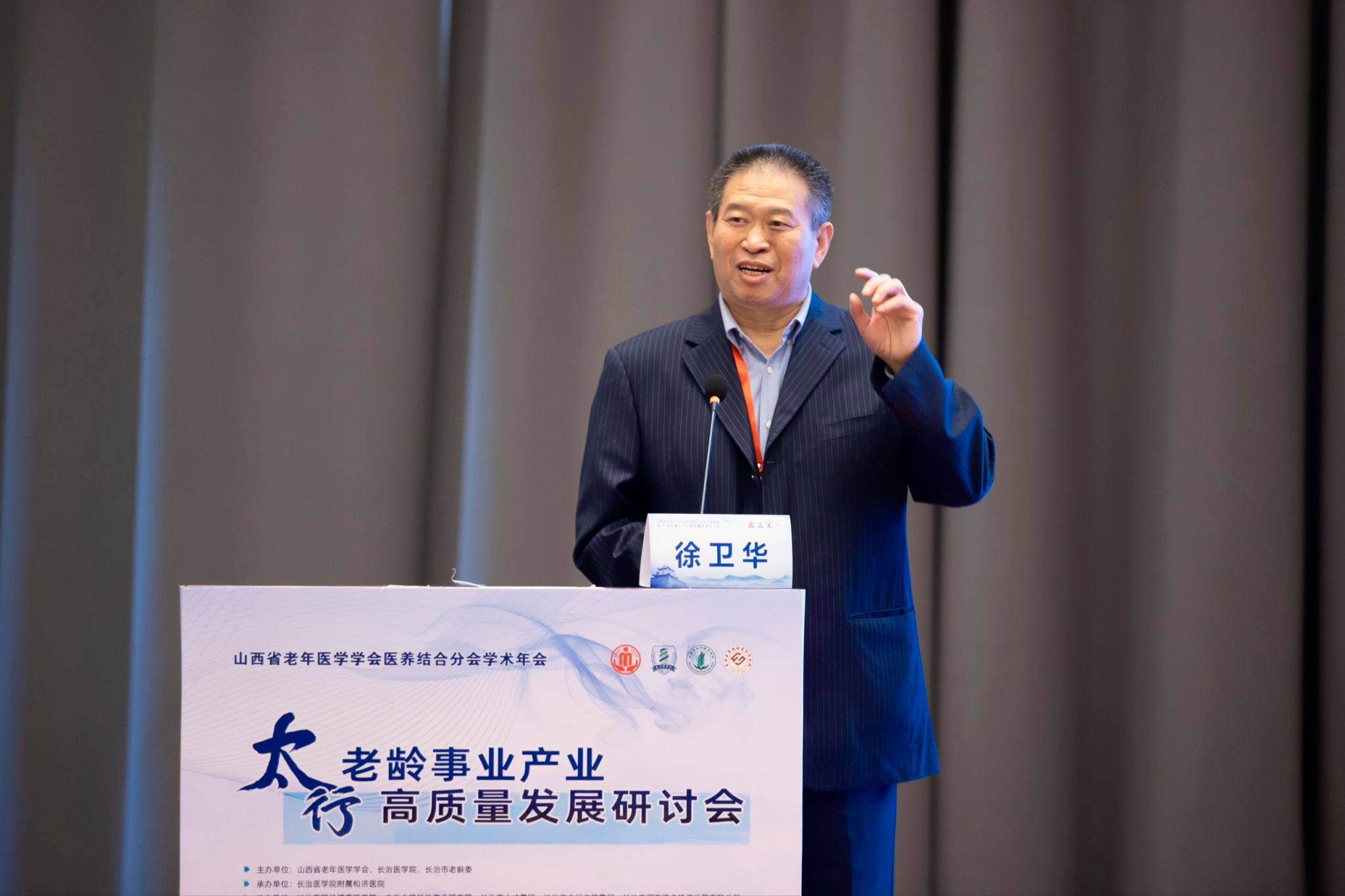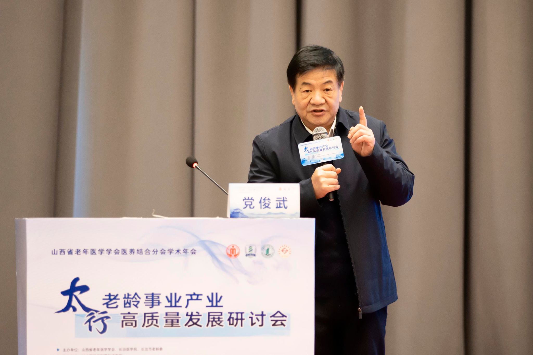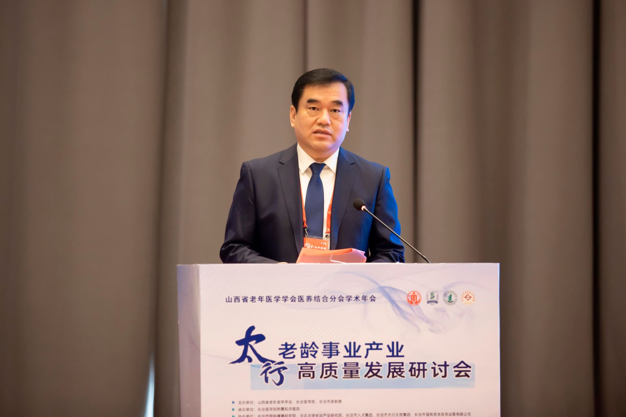 长治医学院党委书记王金胜教授在致辞中代表主办方对与会嘉宾表示热烈欢迎。他强调了长治医学院作为地方医科院校的社会责任与使命,指出学校始终将服务区域老龄事业作为办学的重要方向。通过加强老年医学学科建设、共建银龄健康研究院、成立智慧康养产业学院等一系列举措,学校致力于构建“医、教、研、产”融合发展的创新生态,为区域老龄事业和产业高质量发展提供坚实的人才与科技支撑。
