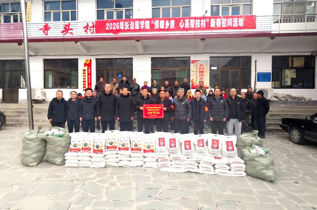1月14日,党委书记王金胜、校长王旭、党委副书记郑金平一行分别赴平顺县东寺头乡寺头村、神龙湾村,开展“情暖乡亲 心系帮扶村”新春慰问活动,向村民们送上节日祝福、慰问物资和长医干部群众捐赠的爱心款,并围绕乡村振兴工作开展专题调研。组织部部长王黎刚,党委(院长)办公室主任邢育宏陪同慰问,平顺县人大常委会主任王建中、县生态文化旅游示范区管委会常务副主任桑宏亮,东寺头乡党委书记张璞、乡长宇文杰等地方领导共同参加活动。