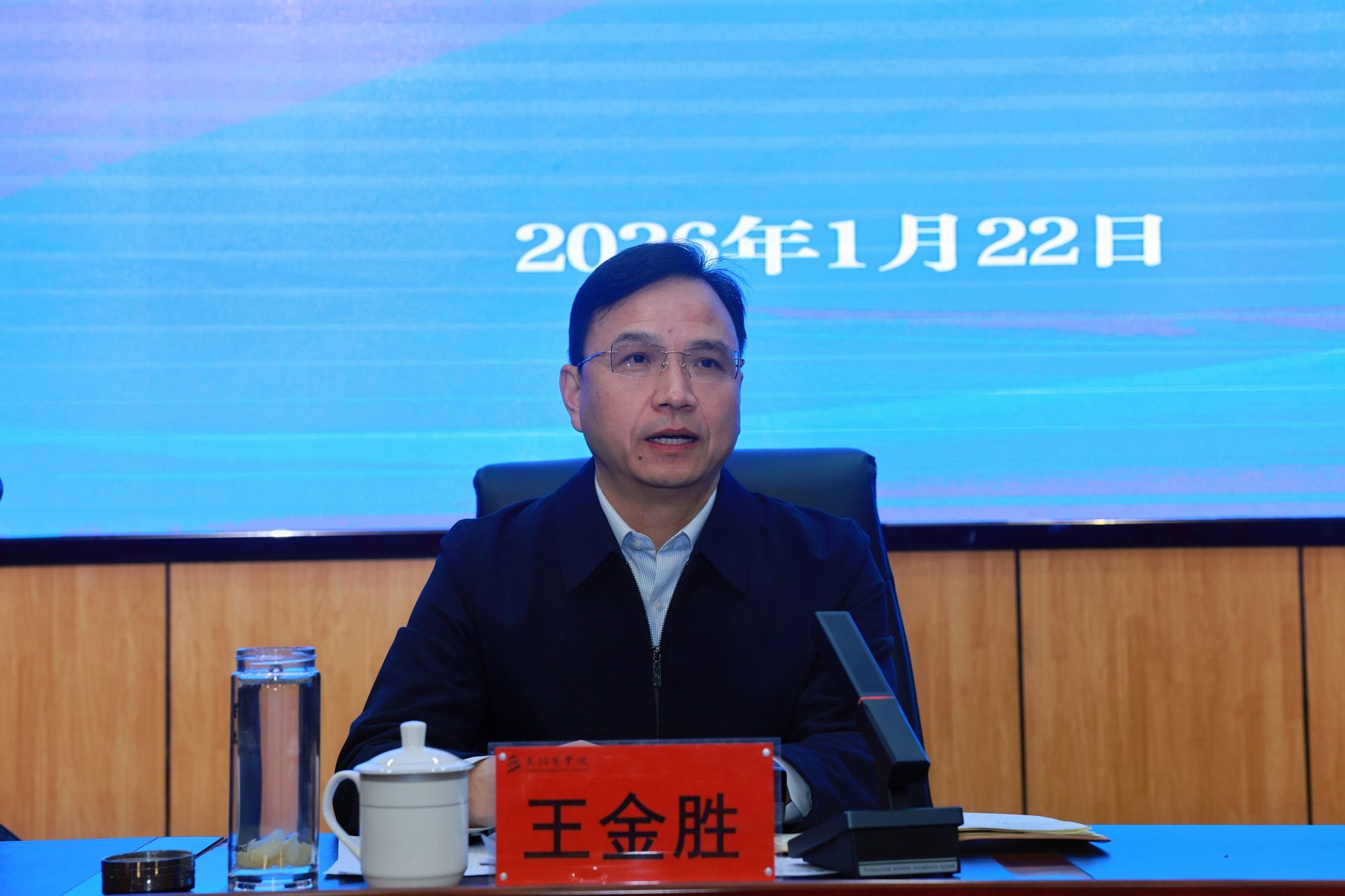 1月22日下午,我校在济世厅召开2026年寒假工作会议,全面安排部署寒假期间重点工作,从严强调寒假及春节期间纪律要求,为新一年学校各项工作开好局、起好步,谋篇布局、凝心聚力。校领导班子成员,校本部副科级以上干部,直属附属医院书记、院长,校本部教研室(实验室)主任及全体辅导员参加会议。党委副书记、校长王旭主持会议。