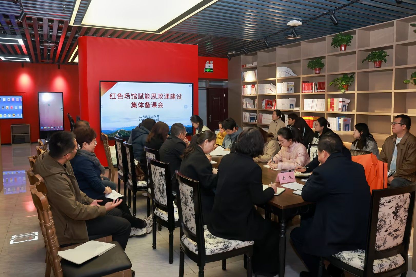 为深入挖掘红色场馆育人价值,创新思政课教学模式,切实强化思政育人实效,近日,我校新建的思政广场、马克思书房等红色育人场馆正式投入教学使用。3月13日上午,马克思主义学院在马克思书房召开“红色场馆赋能思政课建设”集体备课会,校党委副书记、校长王旭出席会议并讲话。学院院长牛翠萍主持会议,马克思主义学院全体思政课教师参加会议。