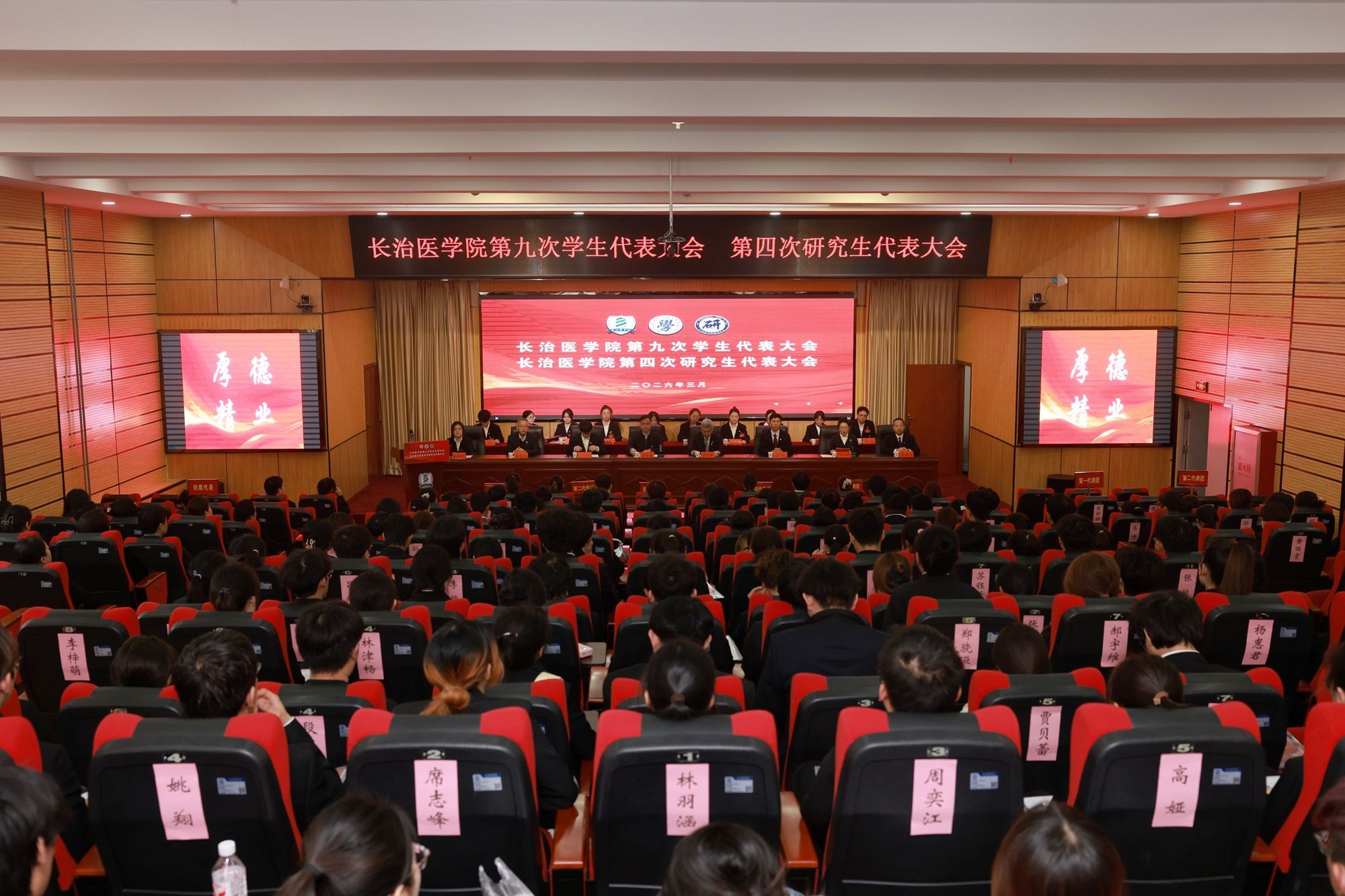 八秩芳华映初心,青春逐梦向未来。3月28日,长治医学院第九次学生代表大会、第四次研究生代表大会在济世厅举行,166名学生代表齐聚一堂,共赴青春盛会、共话使命担当。校党委书记王金胜,校党委副书记郑金平,山西省学联驻会执行主席于博,学工部部长裴振,研究生学院党总支书记、院长,公共卫生学院院长杨建洲 ,教务部副部长李建忠,校学生会代表高榕健应邀出席开幕式,校团委书记张丽娜主持大会。